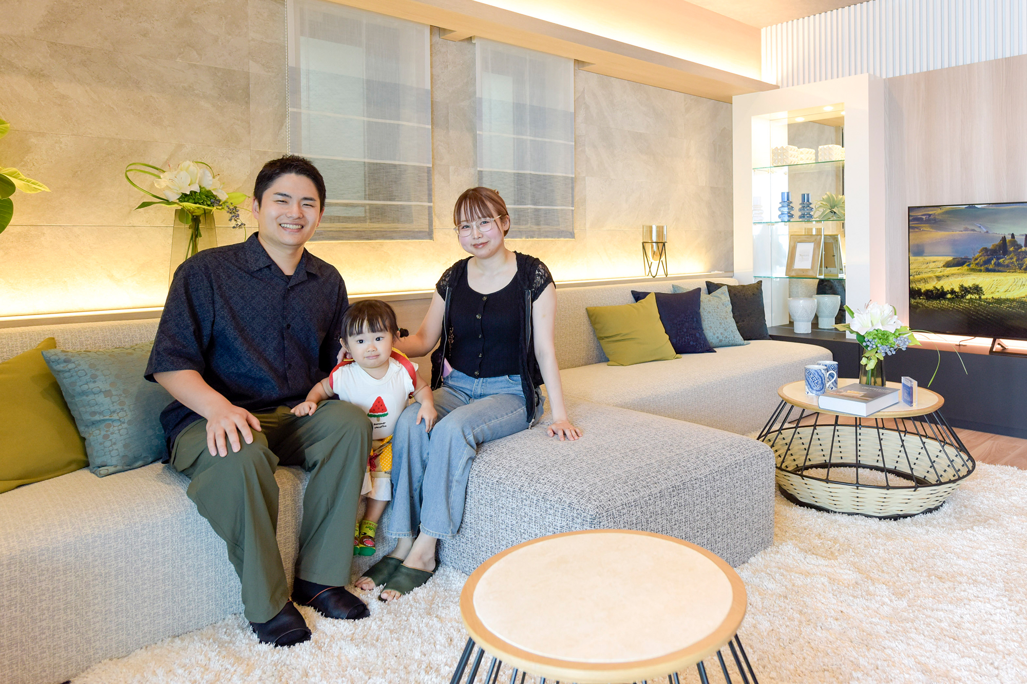 「この近くのスーパーやホームセンターなどでよく買い物をしているので、新しいマンションを建てていることは知っていました。」というHご夫妻が、「プレディア一宮ハイムスイート」のマンションギャラリーを訪れたのは、今年の春。新聞の折込チラシをご覧になったことがきっかけでした。「モデルルームがとても素敵で、一目で気に入りました。リビングと隣の洋室をつなげると、みんなで集まることができる大空間になる間取りや、木目調シートの広いバルコニー、開放感のあるセンターオープンサッシなどが特に素敵で、まさに理想の部屋だと思いました。入居まで時間があったので、ゆっくり準備できることも、思い切って購入を決めた理由の一つです。」
