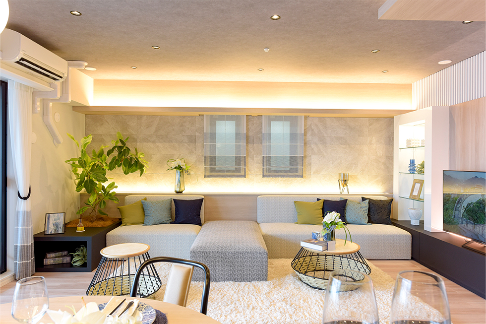 ご入居後に、マンション内の共用施設を利用することが楽しみというH家。「このマンションには映画鑑賞や楽器の演奏などができる防音ルームがあるそうです。まだ子供が小さくて一緒に映画館に行けないので、引越したらこの防音ルームで映画を観たいと思っています。それから、カウンターキッチン付きのマルチルームやキッズスペースもぜひ利用してみたいですね。子供のお友だちも呼んでパーティーをしたら楽しそうです。」広い敷地を活かした全戸分の平置き駐車場や多彩な共用施設が便利で豊かな毎日を育み、堅牢な造りとセキュリティが住まうご家族の暮らしを守る「大規模マンション」という選択。H家のマイホームが完成するのはもうすぐです。
