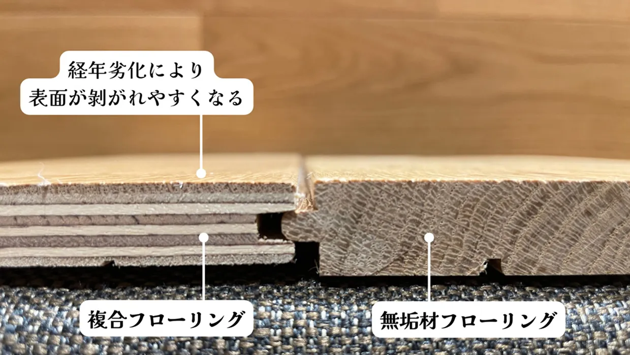 天然無垢材は合板材と比較し、耐久年数が長いのが特長。