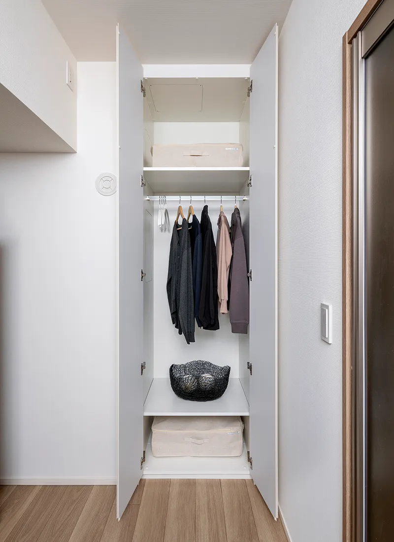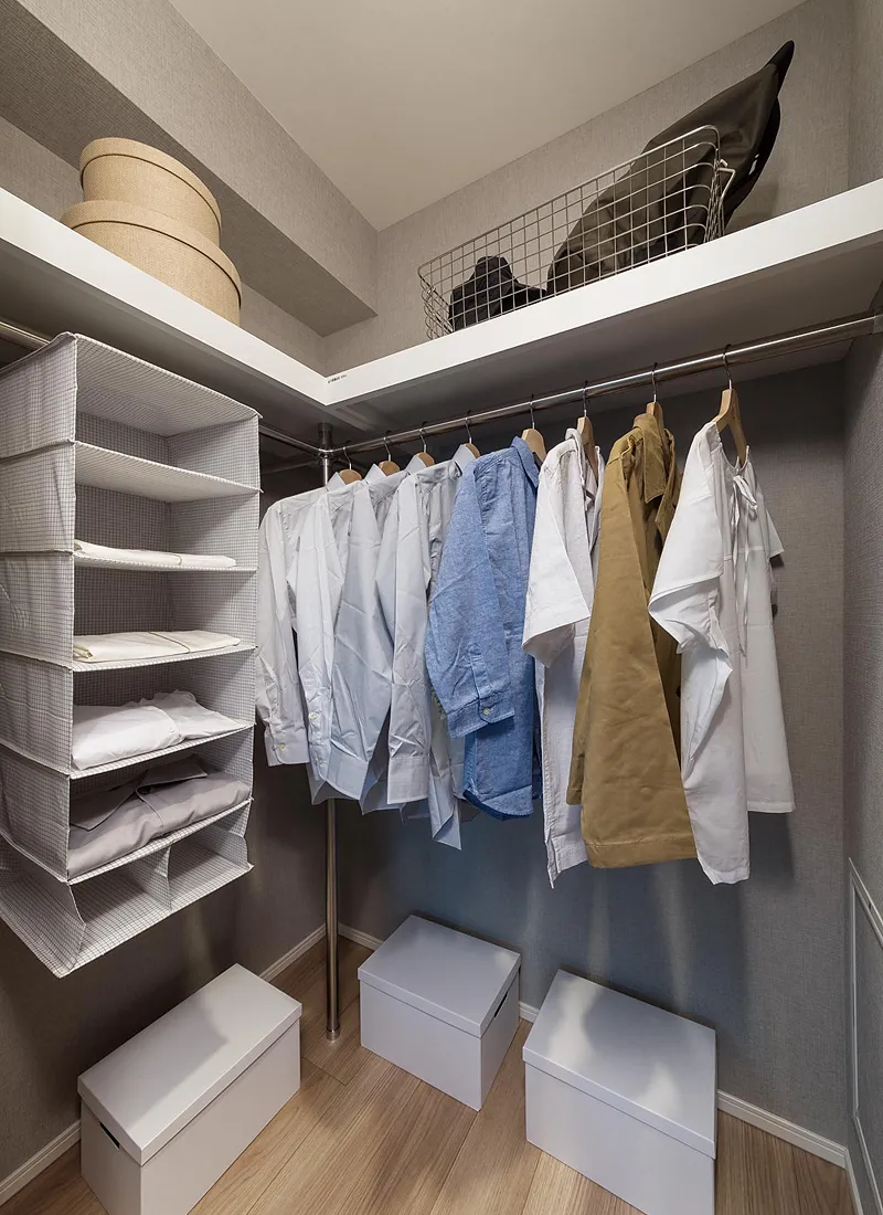 クローゼットオールシーズンの衣類、鞄や帽子など、様々なアイテムを見やすく、取り出しやすく収納できる大容量スペースです。