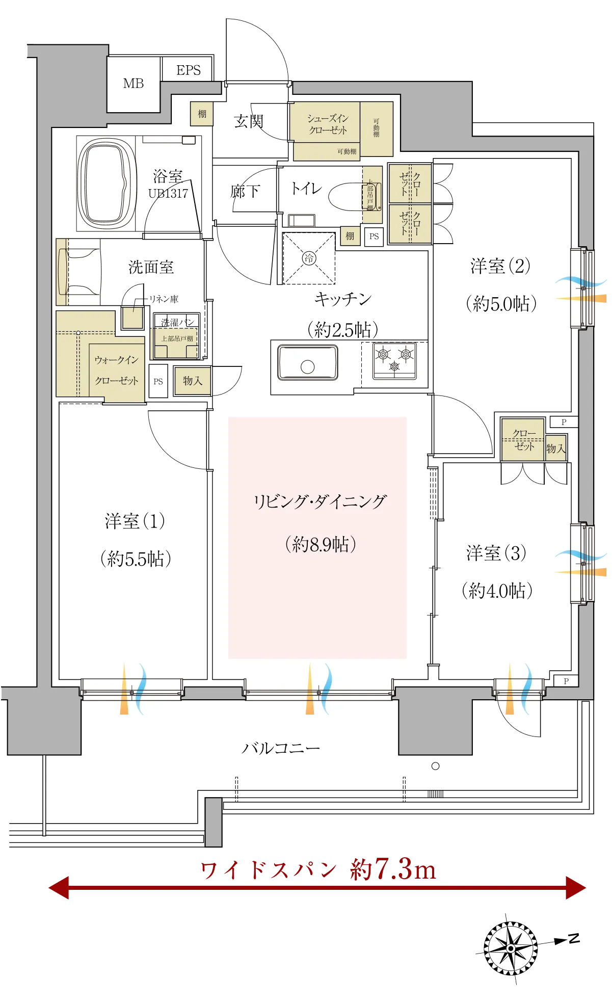 ワイドスパン角住戸。 - ウォークインクローゼットや