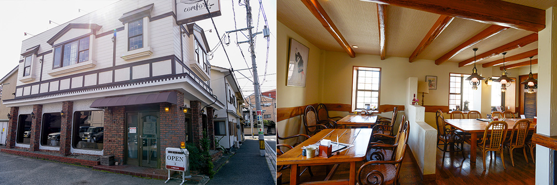 「コンフォート」は創業50年を超える老舗の洋食店。「全て手作り」にこだわり、カレー、ハンバーグ、エビフライ、カニクリームコロッケ、オムライスなど定番の洋食メニューが、8:00~20:00の営業時間中いつでも食べられます。名物のワッフルやパフェなどスイーツメニューも充実。ランチに、ディナーに、3時のおやつに、タイムリーに利用できます。