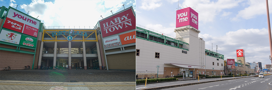 「天満屋ハピータウン」と「ゆめタウン福山」という2つの大型商業施設が連なる福山最大級の複合ショッピングモール「ポートプラザ」。「福山」駅南東に位置する国道2号線と国道313号線の交差点、という福山の中心市街地にありながら、7万平米を超える敷地に約2,700台収容の駐車場を備えた、まさにこの街を代表する商業スポットです。