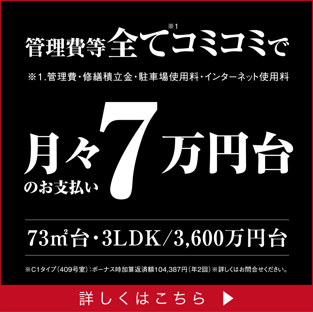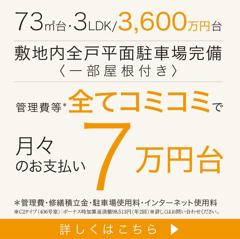 全邸ワイドスパン設計採用の基本13タイプをご用意。最上階はいずれも採光性に優れた、プレミアムプラン。南角住戸は100㎡超のゆとりある広さ。