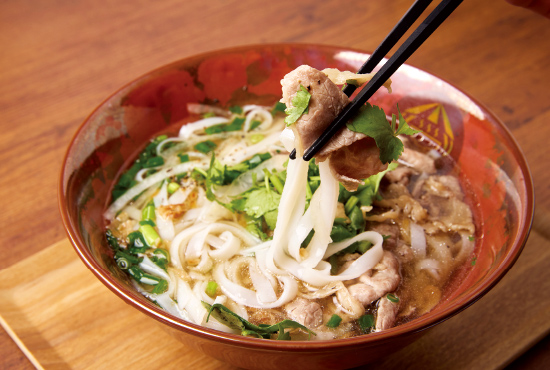 THIÊN AN(ティンアン)目を惹く緑の外観とこじんまりした店内は、まるでベトナムに来たよう。おすすめは牛肉フォー。時間をかけてじっくり煮込んだスープは、あっさりなのにコクがあり、スープも全て飲み干せます。