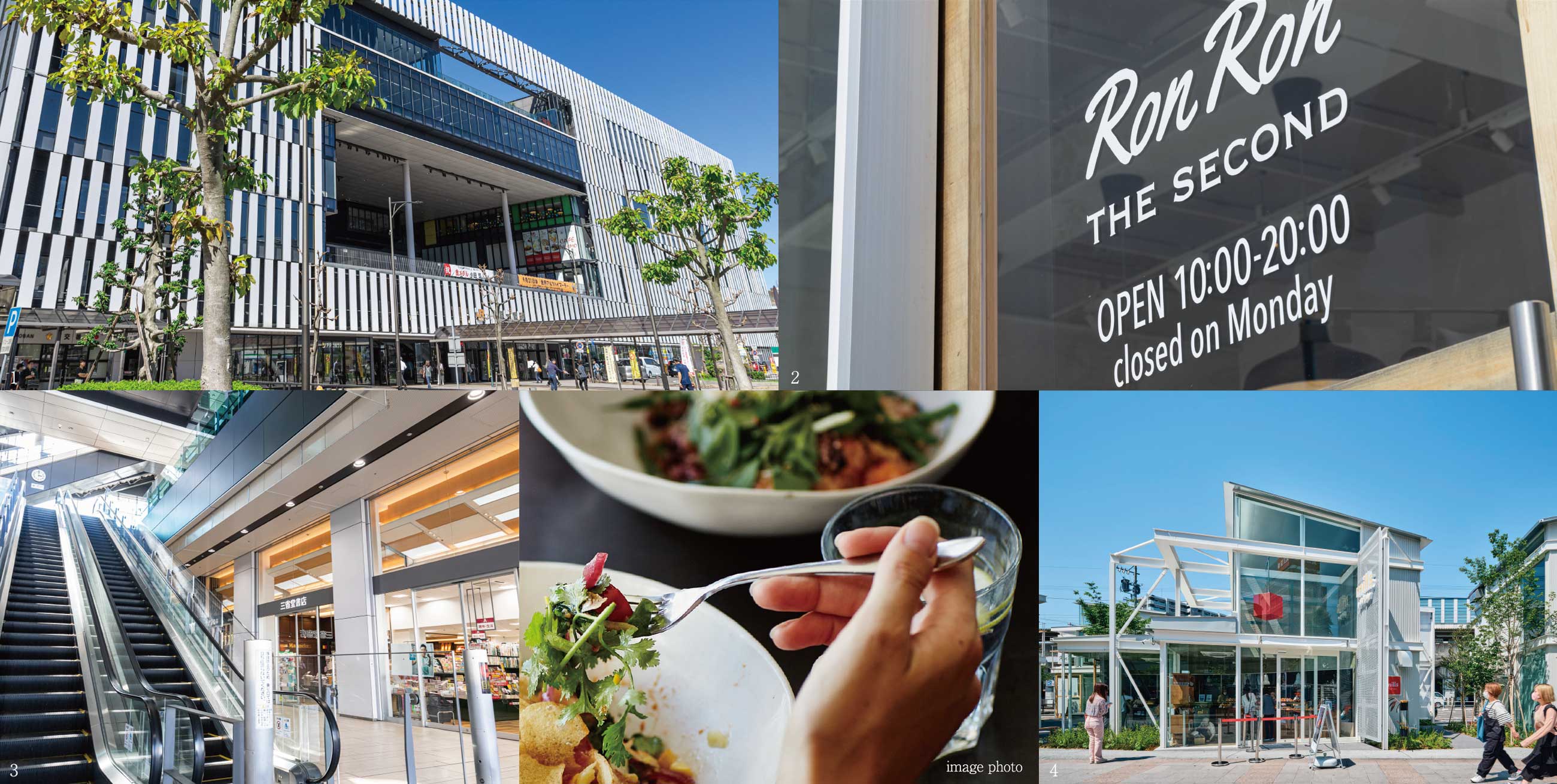 歩いて楽しい空間として緑が充実した解放感あふれる施設。大きなガラス張り、ノコギリ屋根をイメージさせるスタイリッシュなデザインが駅前の新しい風景を描きます。