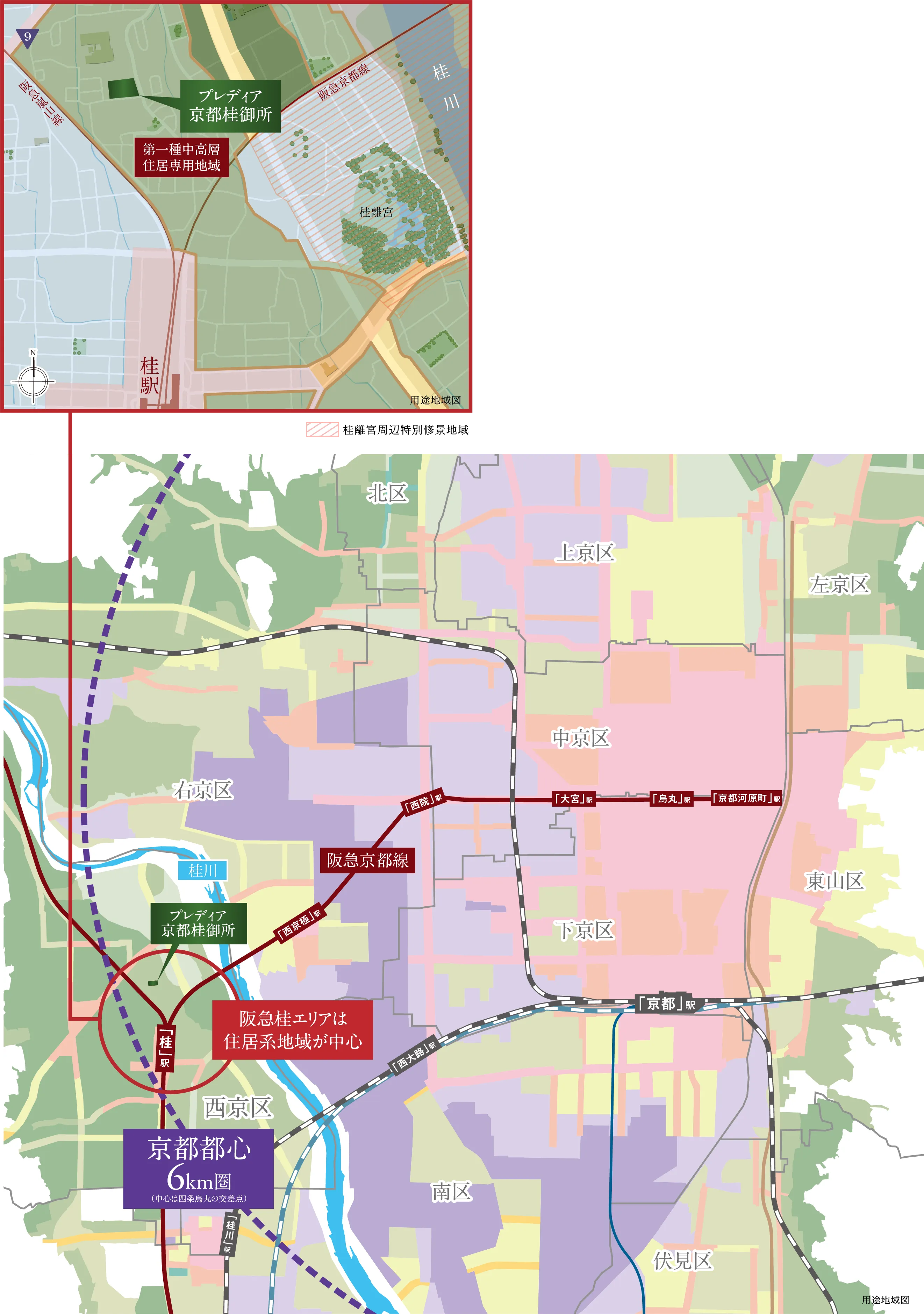阪急桂エリアは「第一種中高層住居専用地域」を中心に