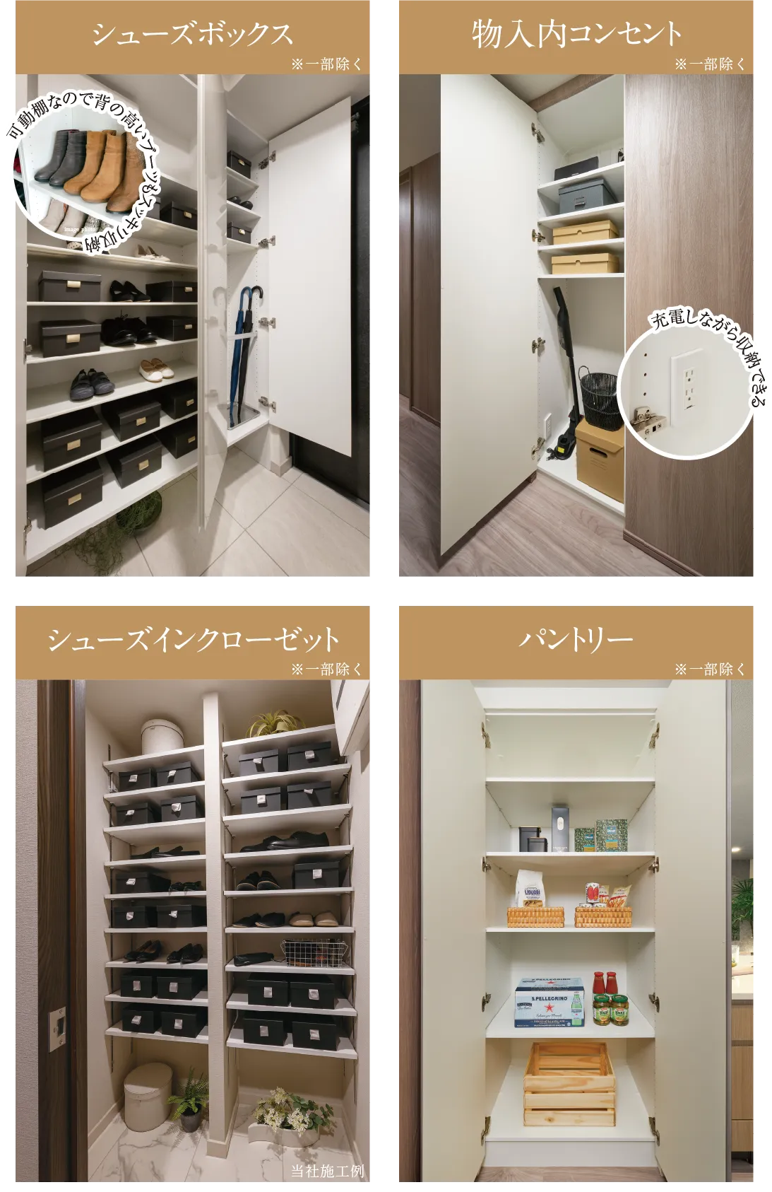 ※収納スペースの収納サイズ等はタイプにより異なります。※掲載の写真はマンションギャラリー・モデルルーム(SEタイプ)を撮影(2024年12月)したもので、実際の仕様・仕上げとは異なる場合があります。