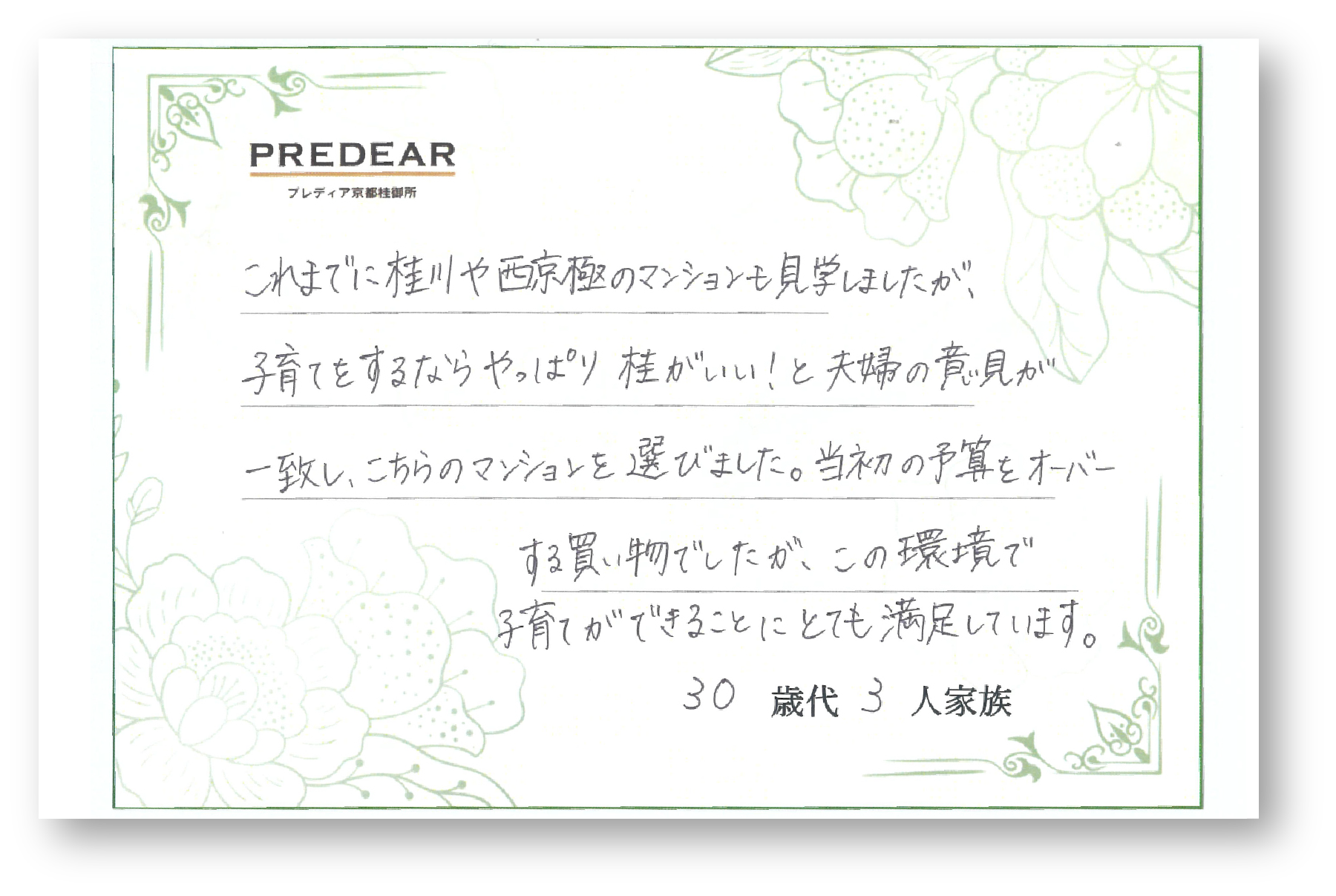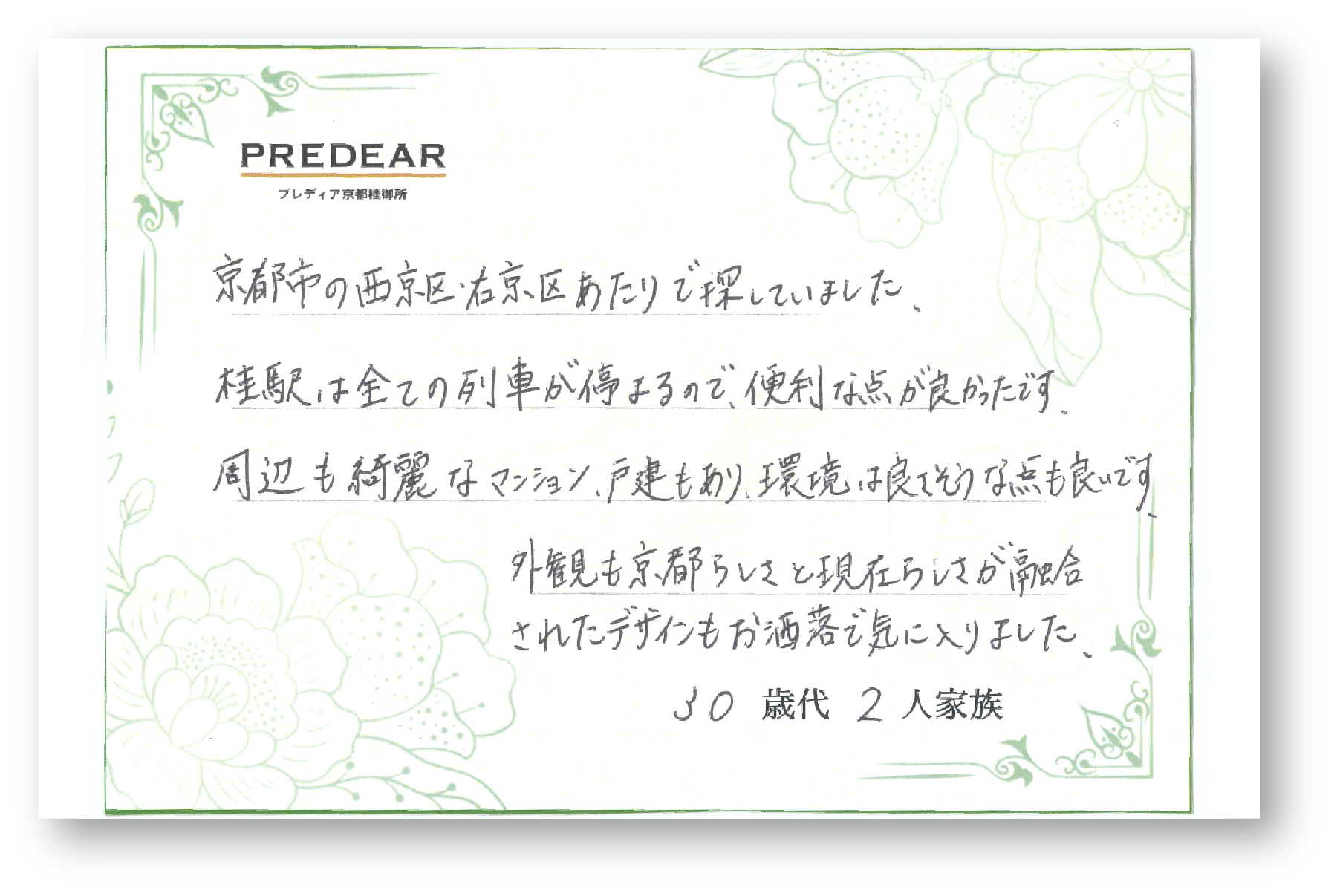 プレディア京都桂御所には、住まい選びにこだわる多くのご家族が惹かれています。
