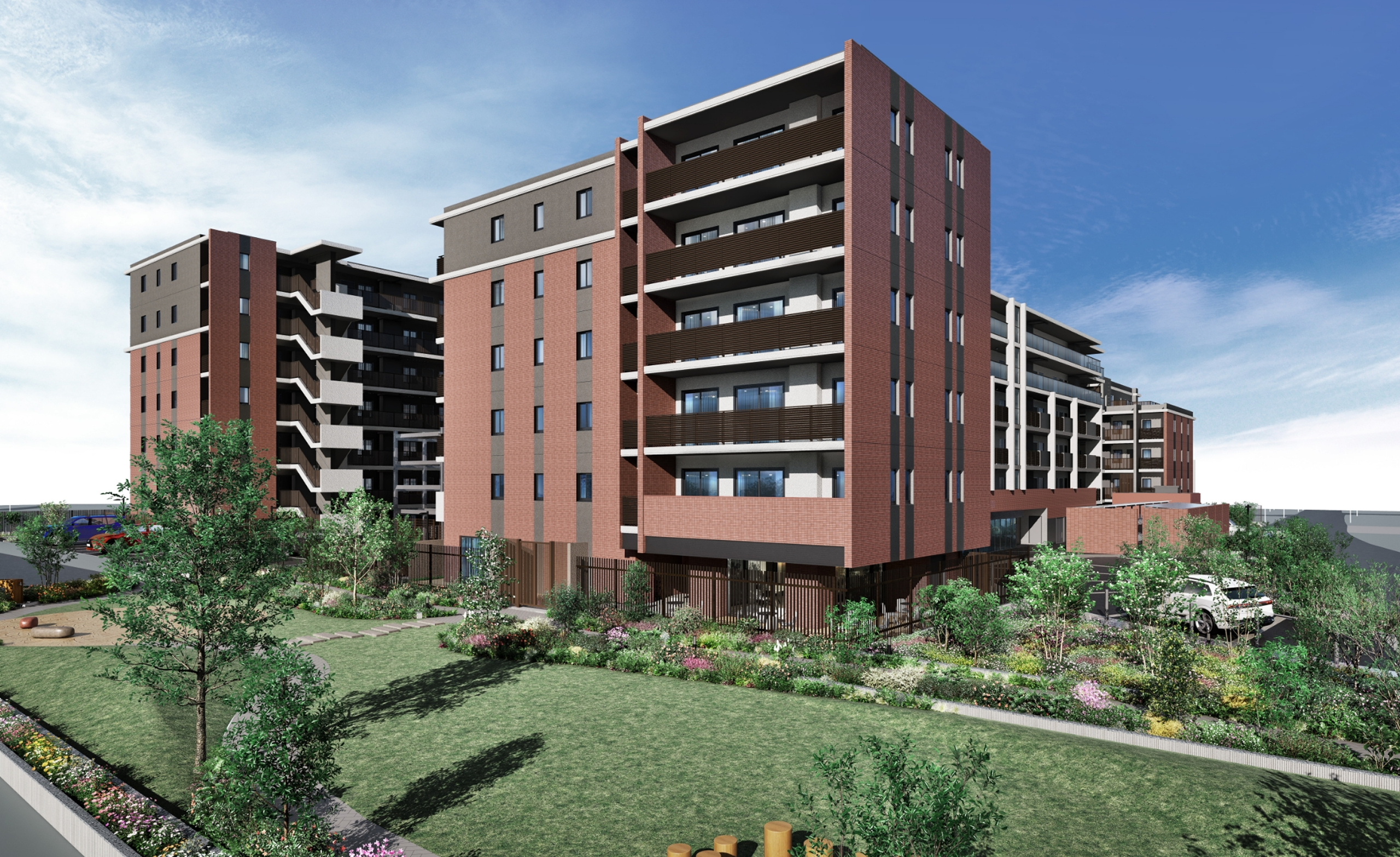 ※掲載の完成予想CGは計画段階の図面を基に描き起こしたもので、形状・色等は実際とは異なる場合がございます。なお、外観形状の細部、照明・排水設備・室外機・雨桶・換気口・各種桝等の設備機器は表現しておりません。設計段階のもので、行政等の指示により今後変更となる場合がございます。また植栽は、特定の季節やご入居時の状態を想定して描かれたものではありません。植栽は計画段階のものであり、樹種等が変更になる場合があります。