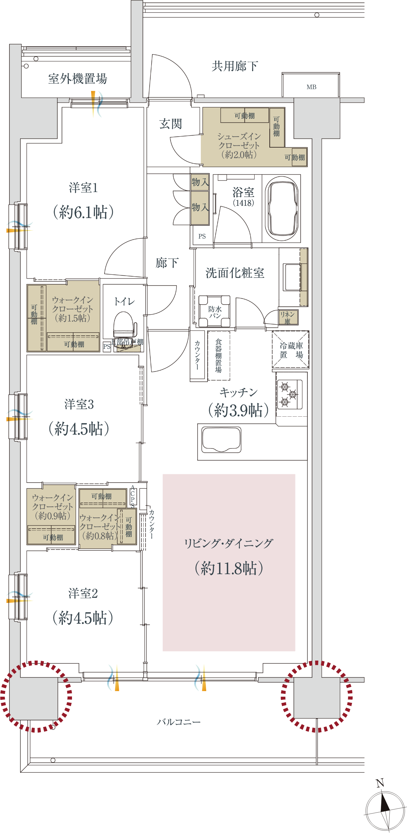 WIC:ウォークインクローゼット SIC:シューズインクローゼット