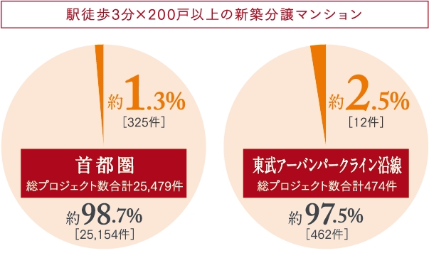駅徒歩3分以内×大規模は供給率約1.3%。