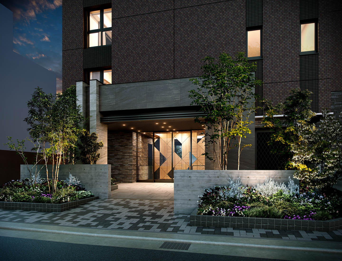 街の景観を高める造形美は、プライベートな領域への確かな境界を示し、心和ませる豊かな緑の植栽とともに、美しいデザイン空間がお迎えします。ここにレジデンスとしての品格を表象する上質と落ち着きを描き出しました。
