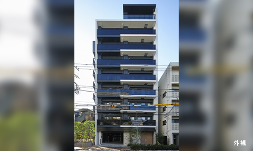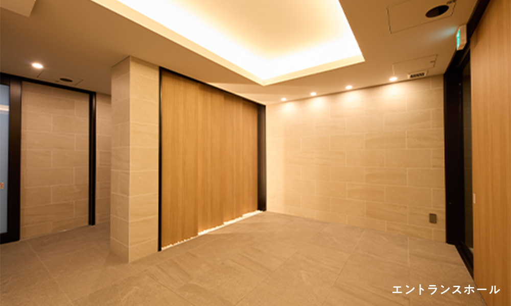 建物全体の外観は、モノトーンを基調とし、都会的でスタイリッシュな 上質な住空間を想起させるデザインとしました。シンプルでありながら個性的で洗練された外観が 周辺の住宅地と調和しながら存在感を示します。エントランスへのアプローチには、 モノトーンの建物と対比するように四季の移ろいを感じられる木々をふんだんに配置し、 木目調の温かみのあるエントランスホールとともに住む人たちを建物内へ迎え入れます。 都市の喧騒を忘れさせる落ち着きと安らぎを湛えた設計を細部にまで施しました。