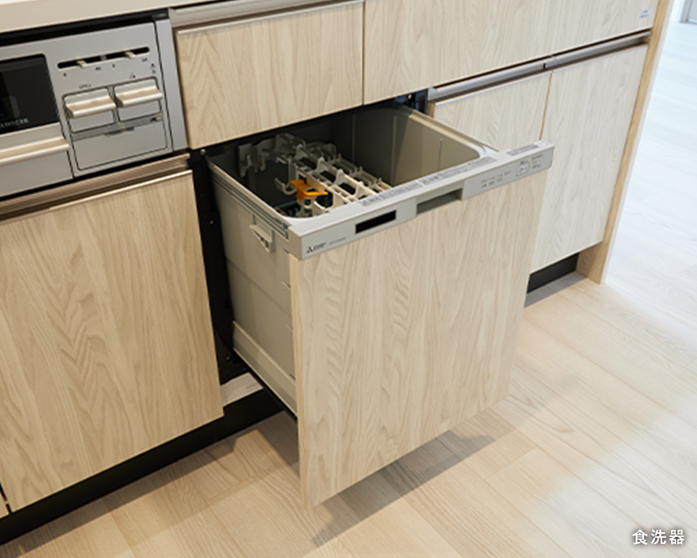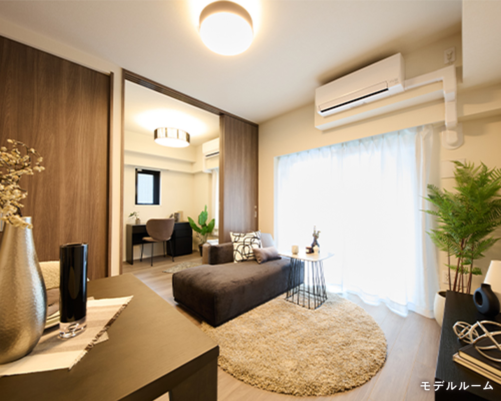 各住戸は、梁による下がり天井が少ないスクエアな空間とし、開口を広くとることで 解放感のある明るい部屋としました。天井の高さまで上げた、間仕切り建具・スライディングウォールによる 可変性のある居室に加え、タイル張り廊下や食洗器など、機能性と美しさを備えた設備・仕様を完備し 日々の暮らしを上質で快適なものにする住空間を提供します。
