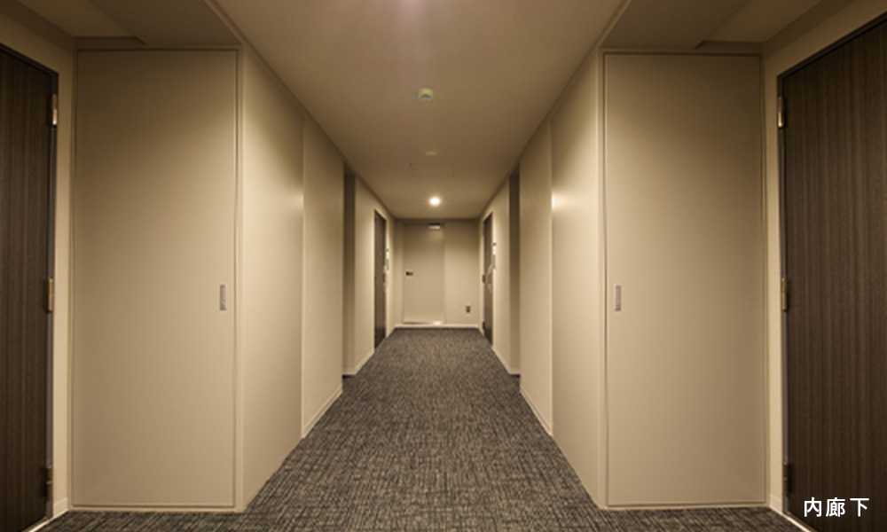 住む方々のプライバシーをしっかりと確保し、やすらぎの生活空間を提供するために 各住戸へのアプローチは、外との結界性・安全性に富み、雨風の強い日にも快適な内廊下設計としました。 また、建物のエントランスには、周囲からの視線を緩やかに遮りながら、敷地内に四季の移ろいと潤いをもたらす 豊かな植栽を施し、日々の暮らしに落ち着きと彩りを与えます。
