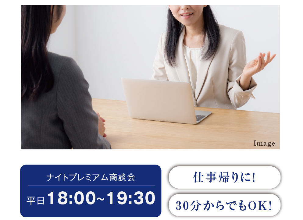 平日の18時から19時30分まで、仕事帰りにも気軽にご来場いただける「ナイトプレミアム商談会」を開催します。