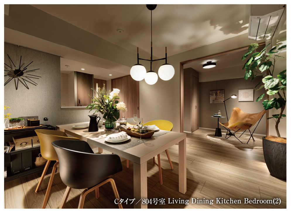 棟内モデルルーム使用家具・照明一式が付帯した家具付き住戸を特別分譲いたします。(Cタイプ/804号室)