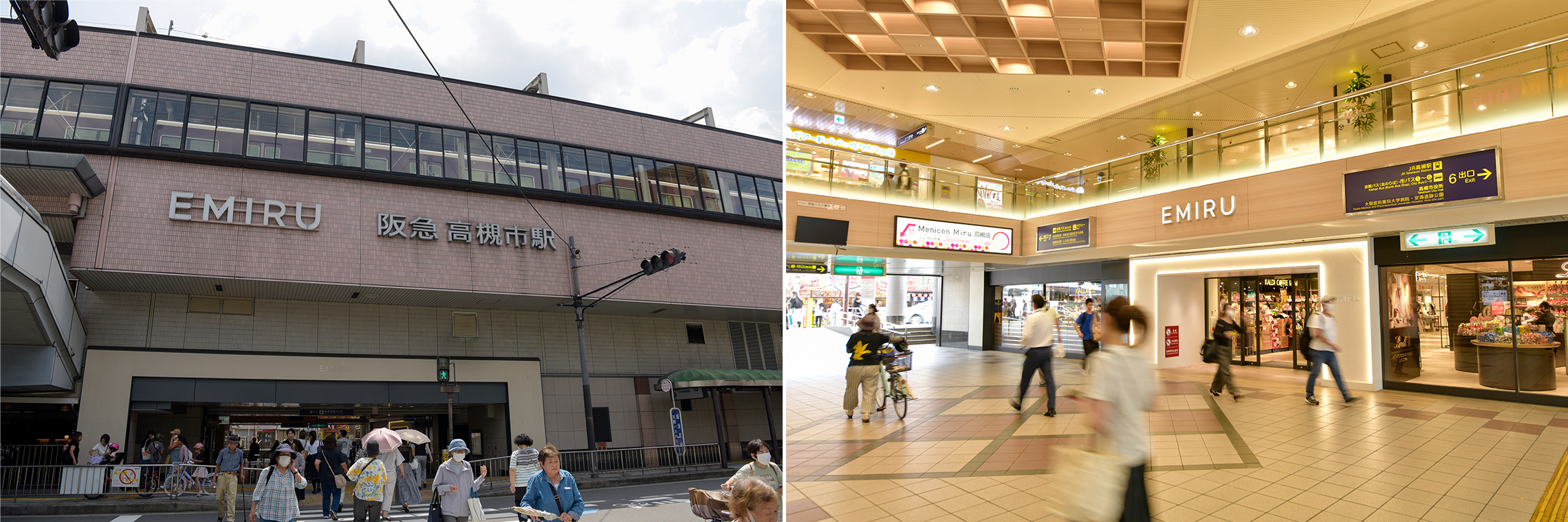 スタート地点はJR「高槻」駅。新快速が停車し、「京都」駅へ13分、「大阪」駅へ16分と、2大都心近接の圧倒的利便性を誇る駅です。駅前には、高槻阪急スクエア(阪急百貨店)や松坂屋高槻店をはじめとする大型商業施設が集積し、ショッピングもグルメも思いのまま。縦横無尽につながるペデストリアンデッキで、多彩な商業施設を便利に行き来できます。