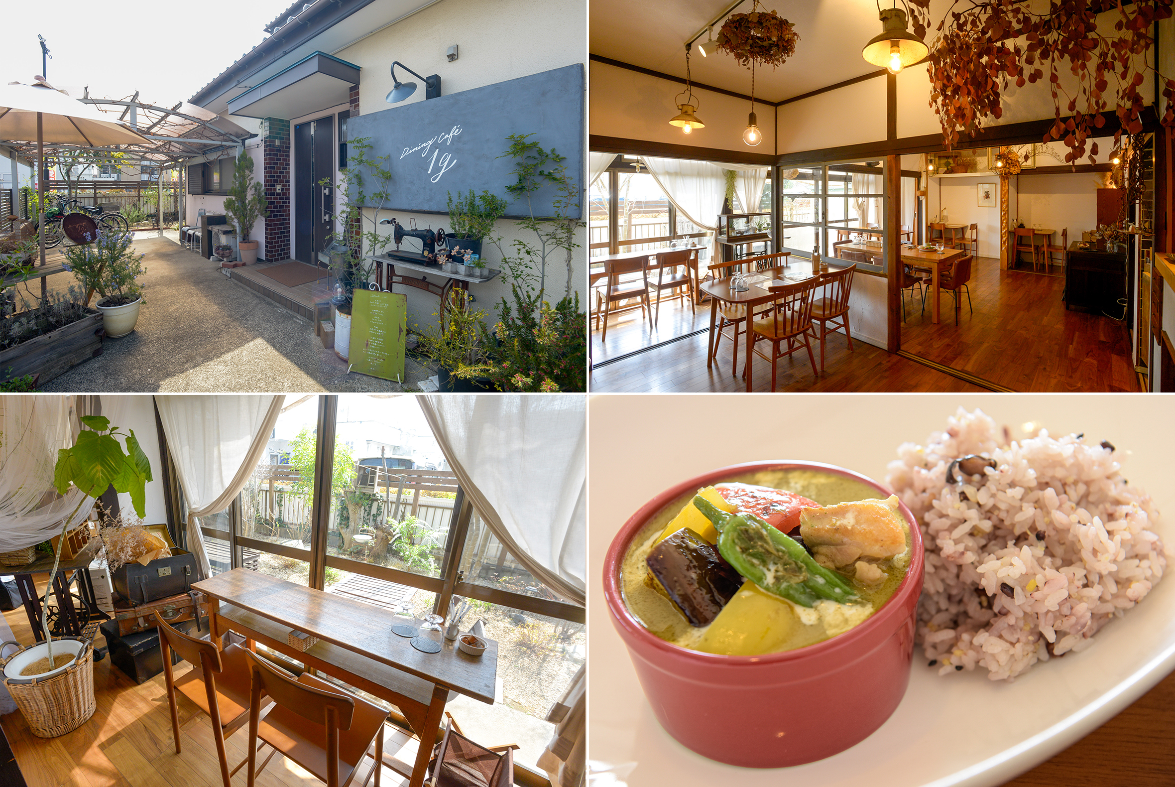 現地すぐ近くの「ダイニングカフェ アンジー」は、民家をリノベーションした隠れ家的カフェレストラン。ランチ・デザートメニューのほか、完全予約制でコースディナーも楽しめます。ご夫婦二人で営むこじんまりとしたお店ですが、驚くほど美味しいお料理と居心地の良い空間、そして素晴らしい接客で、何度でも足を運びたくなる素敵なお店です。