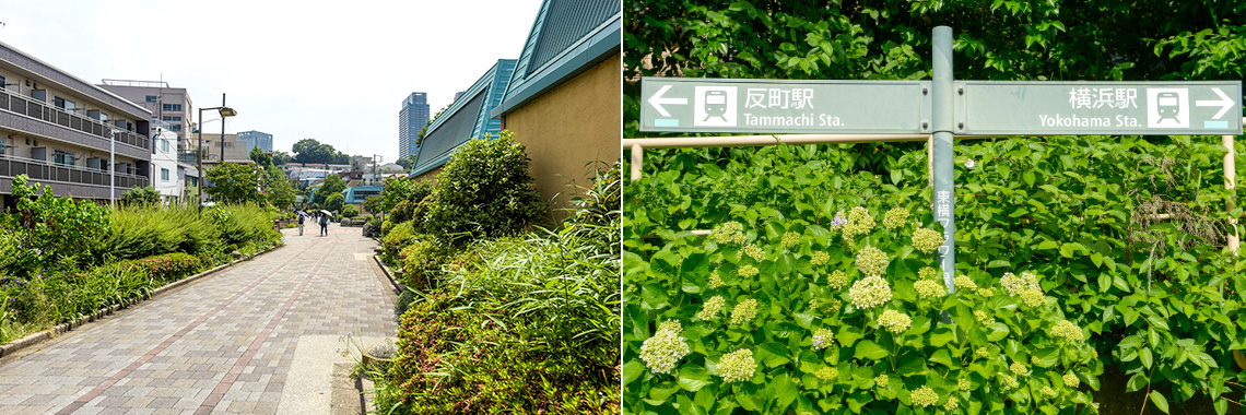「東横フラワー緑道」は、東急東横線の地下化で生じた線路跡に整備された緑道。「反町」駅と「横浜」駅もこの緑道でつながっています。四季折々の花や自然が楽しめるこの緑道は、晴れた日のお散歩にピッタリ。緑道沿いにはワンちゃんOKのカフェ「Cafe de Moco」も。本格的な自家焙煎の珈琲屋さんですが、手作り焼き菓子や生しぼりレモネードも人気です。