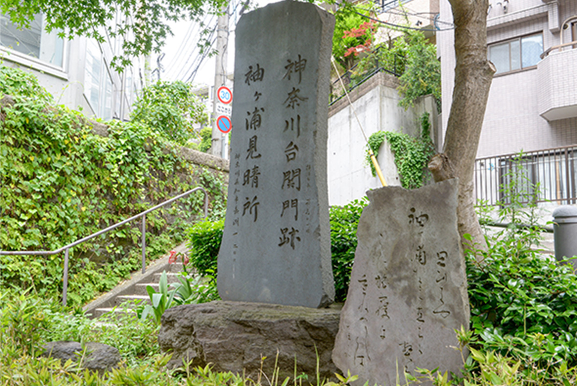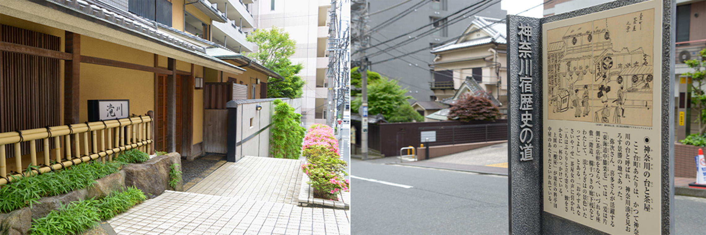 環状1号線から旧東海道へ。かつて「神奈川宿」があった旧東海道周辺は、横浜市によって歴史の散歩道に指定され、「横浜」駅から数分の距離とは思えないような閑静な街並みが広がっています。宿場町として栄えた街の歴史を継承する老舗料亭が今も営業し、「神奈川台関門跡」の石碑など、横浜の原点となった丘の歴史を伝えるスポットが数多く残されています。