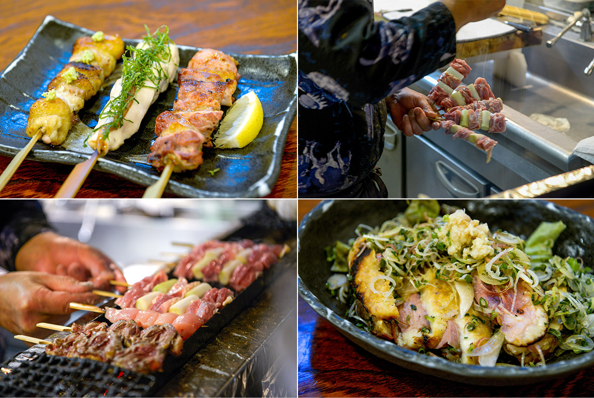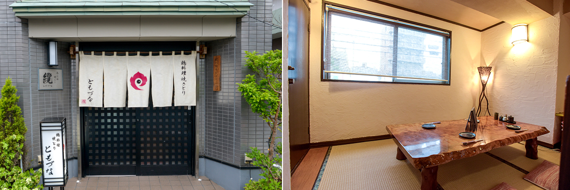 「嶋田青果店」の並びにある「纜(ともづな)」は、焼き鶏をはじめとする鶏料理の専門店。こちらも地元で知らない方はいない人気店です。お刺身でも食べられる「大和肉鶏」の雌の肉を「紀州備長炭」で丁寧に焼いた焼き鶏は絶品。調理の様子を見ながら食事を楽しめるカウンター席のほか、テーブル席やお座敷席もあり、シーンに合わせて幅広く利用できます。
