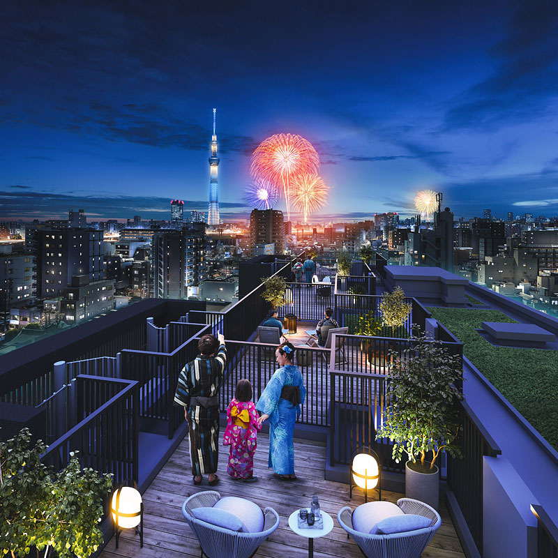 生活や子育てに嬉しい施設が整い、毎日を快適に過ごせる一方、時には、お気に入りのカフェでゆっくりと過ごしたり、東京スカイツリーを借景に川辺をジョギングしたり、お祭りに参加して人とのふれあいを楽しんだり、自宅から花火大会を眺めながら寛いだり。